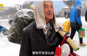 1月25日,在河南洛阳,60多岁的赵师傅表示因为雪天路滑,现在的公交车都不开了,自己只能徒步走回家中,然而洛阳汽车车距离赵师傅的家中足足还有四十多公里。 据拍客了解,曾在上海做小工的赵师傅,到洛阳汽车站后,因大雪客车停运,无奈之下,他只带着凉席