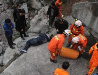 1 月 23 日下午,杭瑞高速印江境内茶园坝隧道铜仁至印江方向出口附近,一名男子在高速路边停车上厕所时,不慎坠下 5 米多高悬崖摔伤被困,当地消防官兵用担架将受伤男子救到高速路边,送往医院进行医治。