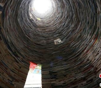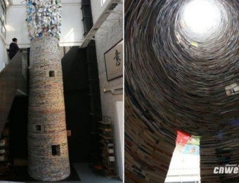 15 吨旧书堆成 11 米高书塔 有门有窗还能进塔拍照