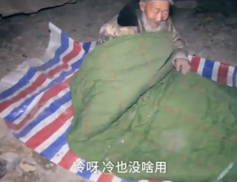 近日,在河南汝州,有一位70多岁的老爷爷睡在工棚外面的地上,因为晚上工棚人太多,住满了,所以他只能在外面睡。老人的老伴患病需要钱买药,所以老人就白天在工地搬水泥,每天能赚多少钱也不知道,他说:“人老了,活不好找。”