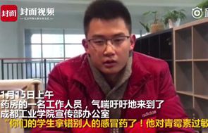 近日,四川成都发生了一件特别暖心的事。 1月15日上午,学生卜英昊到药房拿药时,结果结账的时候不小心拿了别人的药。四川成都工业学院药房的一名工作人员发现后,第一时间赶到成都工业学院宣传部办公室,气喘吁吁地跑到办公室,告诉办公室的老师你们的学生