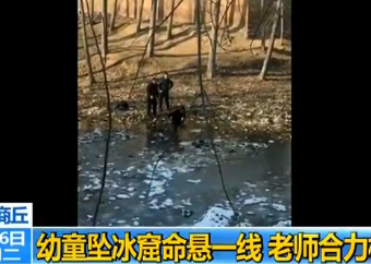央视网消息:近日,河南商丘一名两岁男童在家附近玩耍时,不慎掉进了一处结冰的坑塘,这一幕,被周边学校的一位老师看到,为了能及时救到孩子,他跟同事不顾危险翻墙救人。