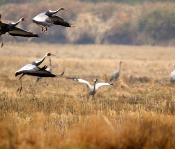 近日,在中国最大淡水湖鄱阳湖发现3只环志白枕鹤,系今冬首次监测到环志白枕鹤。据江西鄱阳湖国家级自然保护区管理局介绍,3只白枕鹤系该保护区与蒙古国合作环志的候鸟,从蒙古国飞回鄱阳湖区。