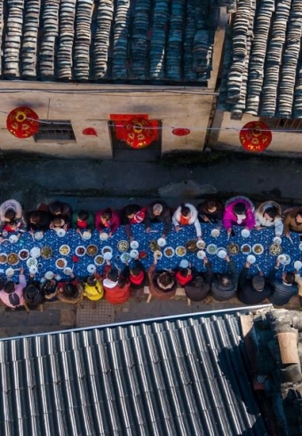 安徽千年古镇老街巷里的长桌宴 摆出百余道美食