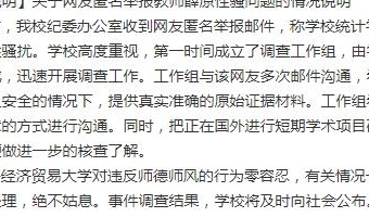 对外经贸大学回应教授性骚扰举报:已成立调查组 召回涉事教师