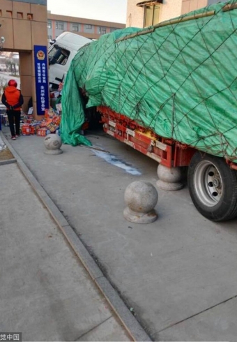 大货车撞击危化车失控冲进学校大门 1人受伤