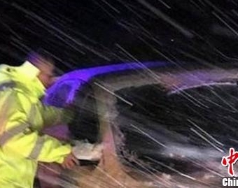 铜川 轿车雪天深陷水沟 路遇拉练武警终获救