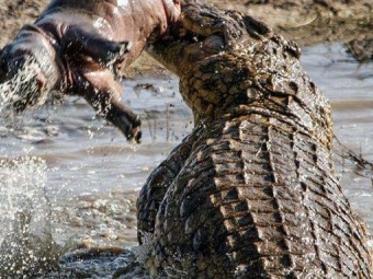 小河马惨遭凶猛巨鳄撕咬, 河马群赶到围攻并秒杀凶残鳄鱼