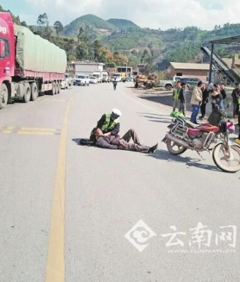 大爷遇车祸晕倒 大理交警席地而坐当靠椅