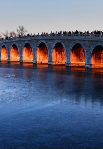地球上有一座独一无二的石桥,每年当太阳直射点在南回归线上,太阳光将同时穿过这座石桥的十七个桥孔,这一奇特景观被称为“金光穿洞”。这座桥位于北京的颐和园,是清朝乾隆年间的桥梁设计者的杰作。