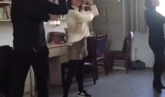 在江西的新余,有一名小学的体育老师谢老师酷爱跳舞,每天在工作之余会在办公室跳舞,跳的特别带劲,还会带动其她女教师跳。同事都称谢老师的舞姿“够燥够浪”。