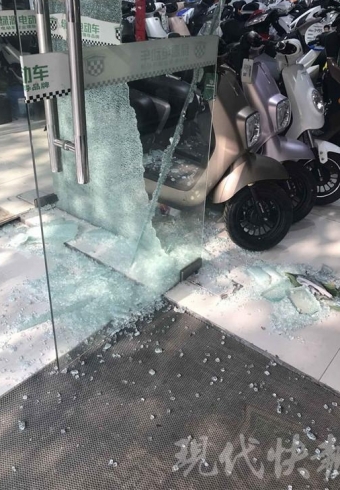 现代快报讯(记者 蔡梦莹)“砰!”12月16日上午11点左右,南京市鼓楼区凤凰西街182号的一家电动车专卖店传来一声巨响。瞬间,玻璃门粉碎,一台电动车也被砸出窟窿。等店老板张先生回过神来才发现,这个“不明飞行物体”原来是一只废旧灭火器钢瓶。
