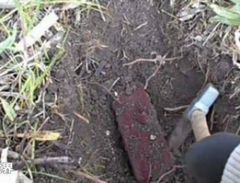 农村小伙在野外闲逛时,无意中发现了一只埋在土里的盒子,就慢慢的把它挖了出来。