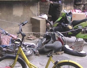 郑州一小区楼顶墙皮脱落 楼下电动车被砸穿