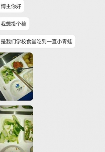 大学食堂真是个神奇的存在,无奇不有!12 月 2 日,合肥一高校学生跟小编反映,在他们学校食堂吃饭,青菜中吃到一只小青蛙。不多说,直接上图!