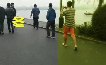 男子短裤短袖凉拖游西湖:我广东来的,不冷