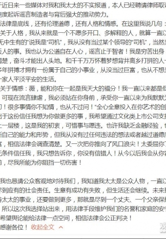 12月4日晚间,赵薇丈夫黄有龙就收购万家文化事件首度公开发声,称将针对不实谣言进行起诉,并热烈表白赵薇。随后,赵薇转发了该条微博并表示“一生问心无愧”。