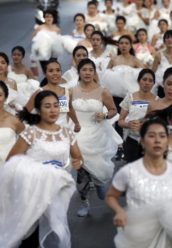 泰国新娘穿婚纱参加赛跑, 伴侣全程陪伴