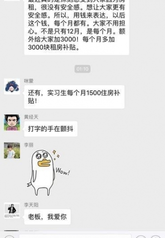 继“实习生拿外卖”、“月薪5万助理”的热议话题之后,近日,咪蒙又成为了热议的话题,有网友曝出了两张咪蒙在公司群中的聊天截图,她在群中表示公司每个月会给员工多加3000元住房补贴,实习生每个月1500元住房补贴。对于近日正在被房租水电物业费掏去一半工