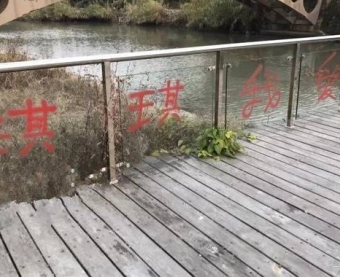 今天在海宁东山公园看到,有人为了求爱表白在地上和玻璃画成这样,要表白也要文明一点,这样算是损坏公共资源了。