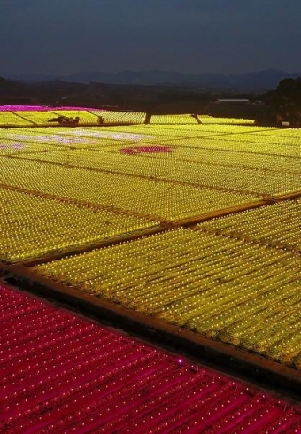 夜间数千亩地里,仿佛铺上了紫黄相间的巨毯——