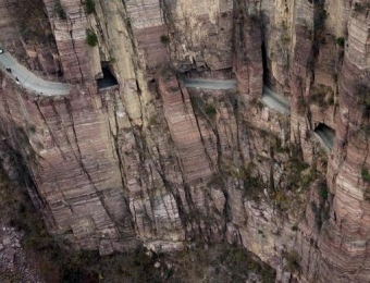 河南新乡,绝壁公路蜿蜒盘旋。1972年为让乡亲们走出大山,13位村民在申明信的带领下,集资购买钢锤 、钢锉,在无电力、无机械的情况下凭一双手,耗时5年时间,硬是在绝壁中凿出了高5米、宽4米,全长1300米的石洞——郭亮洞,并在1977年5月1日通车。