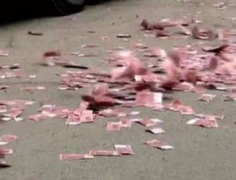 在街上,一个男子拿着几十万的现金在路上乱撒,然后扬长而去,周围的路人看着忽然下起的“现金雨”都呆住了。