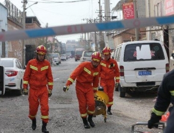 2017 年 11 月 19 日清晨,部分消防人员携带救援设备撤离现场。