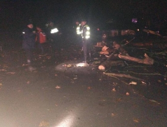 深夜狂风吹倒10米高大树阻断国道,民警人体路标疏通车辆