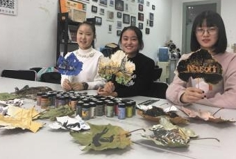 东软仨女生落叶上作画火爆全国RELEASE:2017-11-18 SEE:0