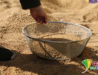 济南市民街头玩“沙里淘金” 吸引路人驻足观看