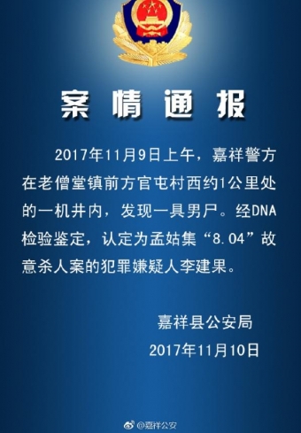 山东嘉祥一家四口被杀案告破:嫌疑人尸体在一机井内被发现