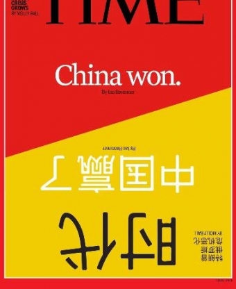 近日,美国《时代》公布了最新一期(11月13日发售)的杂志封面,除美国本土版外,杂志封面都用中文和英文两种语言写上“中国赢了”(China Won)。