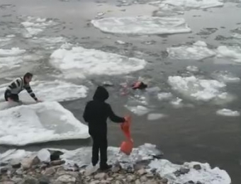 黑河六旬老干警飞跃冰河勇救落水女子上岸后秒变“冰人”