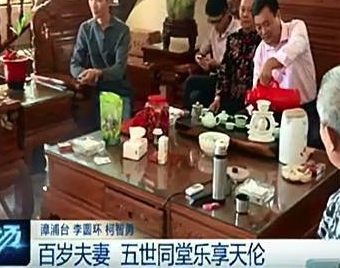 在漳浦县湖西畲族乡后溪村,生活着一对百岁夫妻,丈夫陈江水今年已经100岁了,妻子杨悦仔93岁。两个人从两小无猜走到白发苍苍,一路上风雨同舟、相互扶持,前不久这对百岁夫妻又迎来玄孙的诞生,五代同堂,尽享天伦之乐。