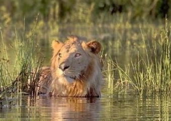 雄狮河里悠闲的乘凉,怎料脖子忽然被咬住并拖拽,真凶让人意外