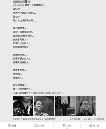 原标题:网友发“莫言鸡汤”遭本尊“打脸”