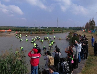 在宝山罗泾镇有句俗语,叫"棒打野鸡瓢舀鱼,螃蟹爬到屋堂里"。字面上看,说的是水乡居民下河舀鱼捉螃蟹的情景,但实际上这句话寓意着秋收时节的丰收。不过啊,现如今大伙儿吃螃蟹大多是市场上购买,下河捕捞的机会是没有的。而今天在宝山罗泾镇,就举办了一场