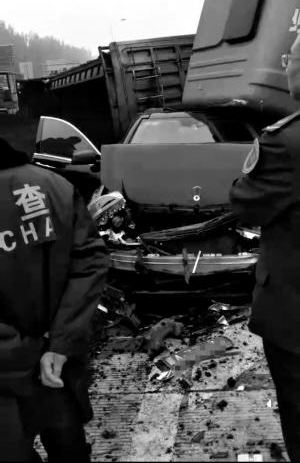高速雾大 拉煤车侧翻压坏奔驰