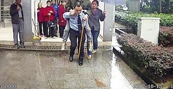 民警背着八旬老人冒雨帮他找到回家的路