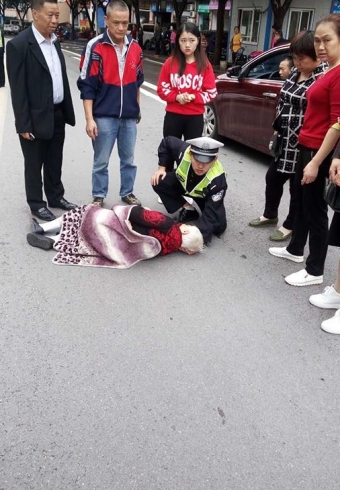 见老人被撞倒地,重庆市云阳县公安局交巡警大队青龙中队民警饶晋豪单膝跪地,单手将老人的头部托住,直至救护车赶到。10月10日,饶晋豪告诉澎湃新闻,发现无法蹲下后,为托住老人头部,只能采取单膝跪地的方式。