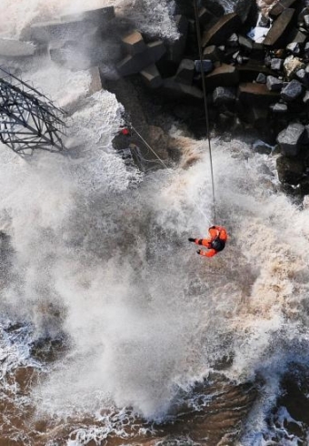 男子钓鱼太投入被困堤坝 直升机前来救援