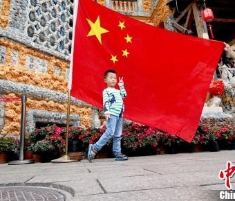 天津瓷房子国庆迎客潮 国旗成最美背景