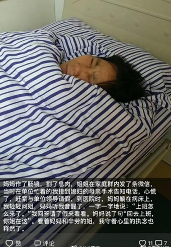 长沙民警刘毅辉的母亲刚动完手术,妻子瞒着母亲悄悄告诉了他。刘毅辉连忙跟所里请了假,所里让他马上赶到医院。病房内,昏睡的母亲听到他的声音便醒了,可睁开眼的第一句话却是:“上班怎么过来呢?”看着憔悴的母亲,刘毅辉强忍着泪水回答:“请了假。”母亲