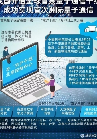 “你好!”29日,从中国发出的一声问好,通过量子保密“京沪干线”,又经过“墨子号”卫星,跨越了半个地球来到奥地利。这是历史上首次洲际量子保密通信,通话内容经过量子加密后无法破解。