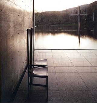 这座教堂以“与自然共生”为主题,教堂的正面由一面长15米,高5米的巨大玻璃组成,5月到11月间,巨大的玻璃将完全打开,使教堂与大自然混为一体,十分壮观。特别是设计师在教堂内挖了一个人工水池,水池的中间是一个十字架,水池是通过精心设计的,让湖面泛起