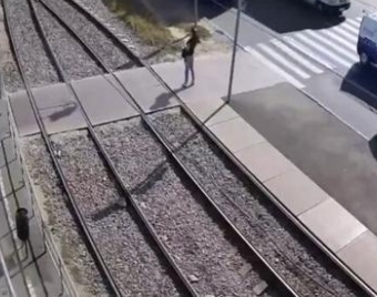 女子过马路玩手机 遭车碾压失右腿