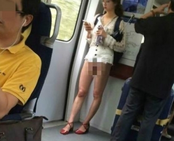 网络上疯传北京地铁的一张图片,眼鏡美女裤子神秘消失?