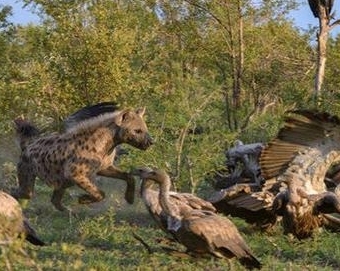 非洲二哥鬣狗抢夺秃鹫的食物,却被其彻底无视!