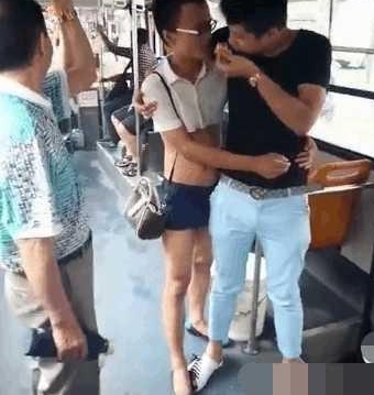 这对情侣外人一看就是一对男同,其中一位的衣着打扮还非常吸睛。他穿着一件刚刚好只能遮住胃部以上的短袖衬衫,穿着一条蓝色的紧身小短裤,脚踩一双女性单鞋。这样的穿着的确让人有点不舒服啊。